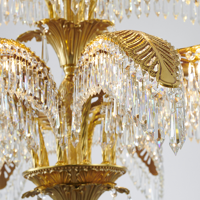 Three-Tier Solid Copper Palm Tree Chandelier with Prism Crystals