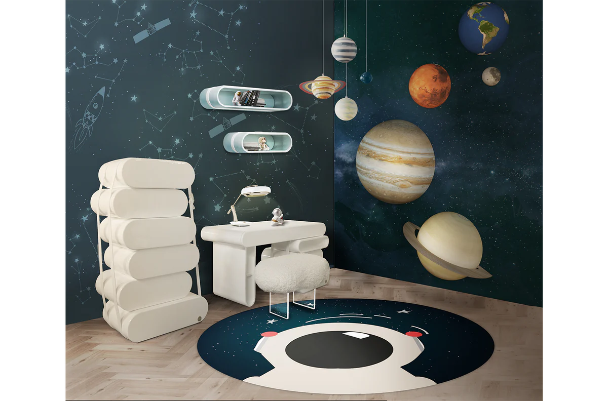 The Cloud Room collection aims to offer you the solution to a never-ending problem: a complete, high-quality design for a child’s bedroom. With a soft-coloured palette that ranges between taupe, blue, pink, white and crème, the collection fits perfectly in every project, house or concept. Handcrafted and hand tailored with only the noblest materials, we not only created furniture pieces, we’ve also created the beginning of a story: Your child’s story.