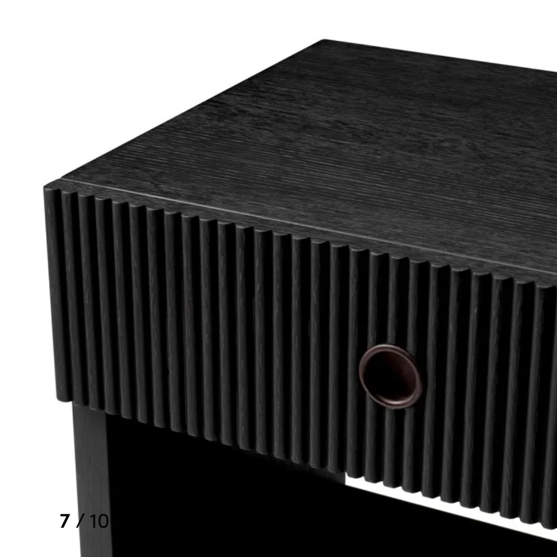 Its ribbed wooden panels and bronze-finished accents create a stunning visual contrast, harmonizing elegance and function. Perfect as a nightstand or side table, its luxurious aura complements any sophisticated interior, captivating the discerning connoisseur of modern design.Dimensions