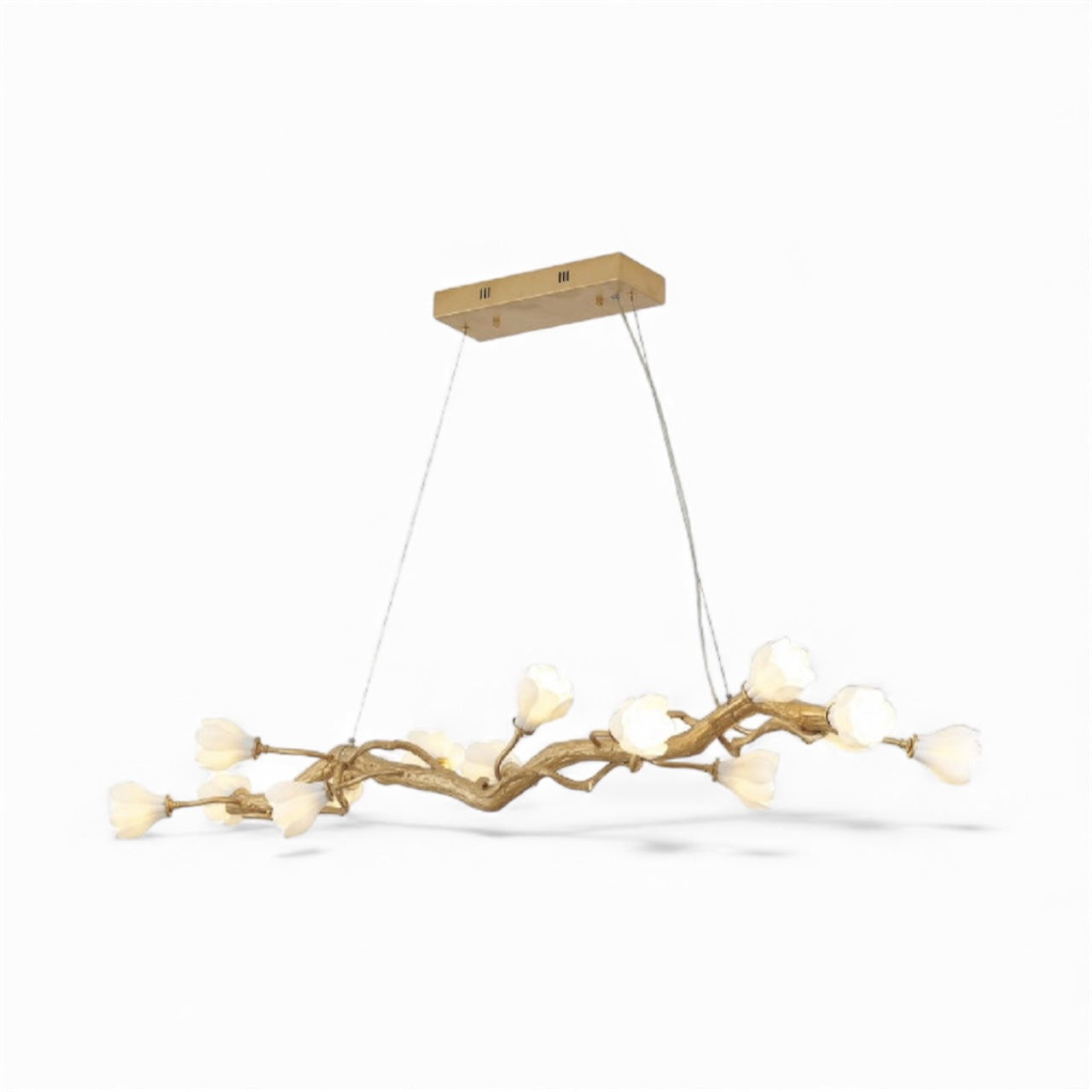 Add an elegant and nature-inspired touch to your home with the Gold Branch Chandelier featuring White Ceramic Flower Shades. The intricate gold branch design evokes the beauty of nature, while the delicate white ceramic flower shades offer a soft, warm glow. This stunning chandelier brings the perfect balance of sophistication and organic charm to any space.