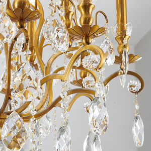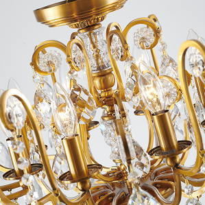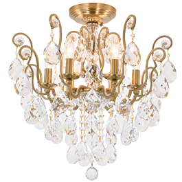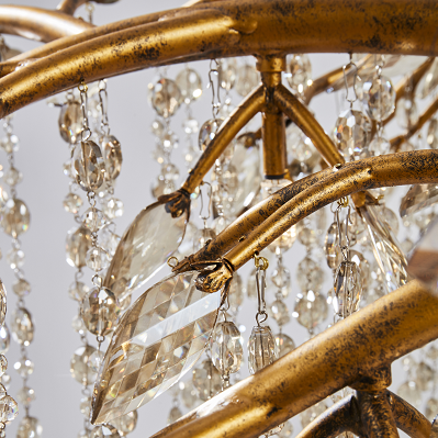 Antique Brass Frame with Clear Hanging Crystals Chandelier