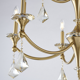 Two-Tier Satin Brass Frame with Champagne Hanging Crystals Accents