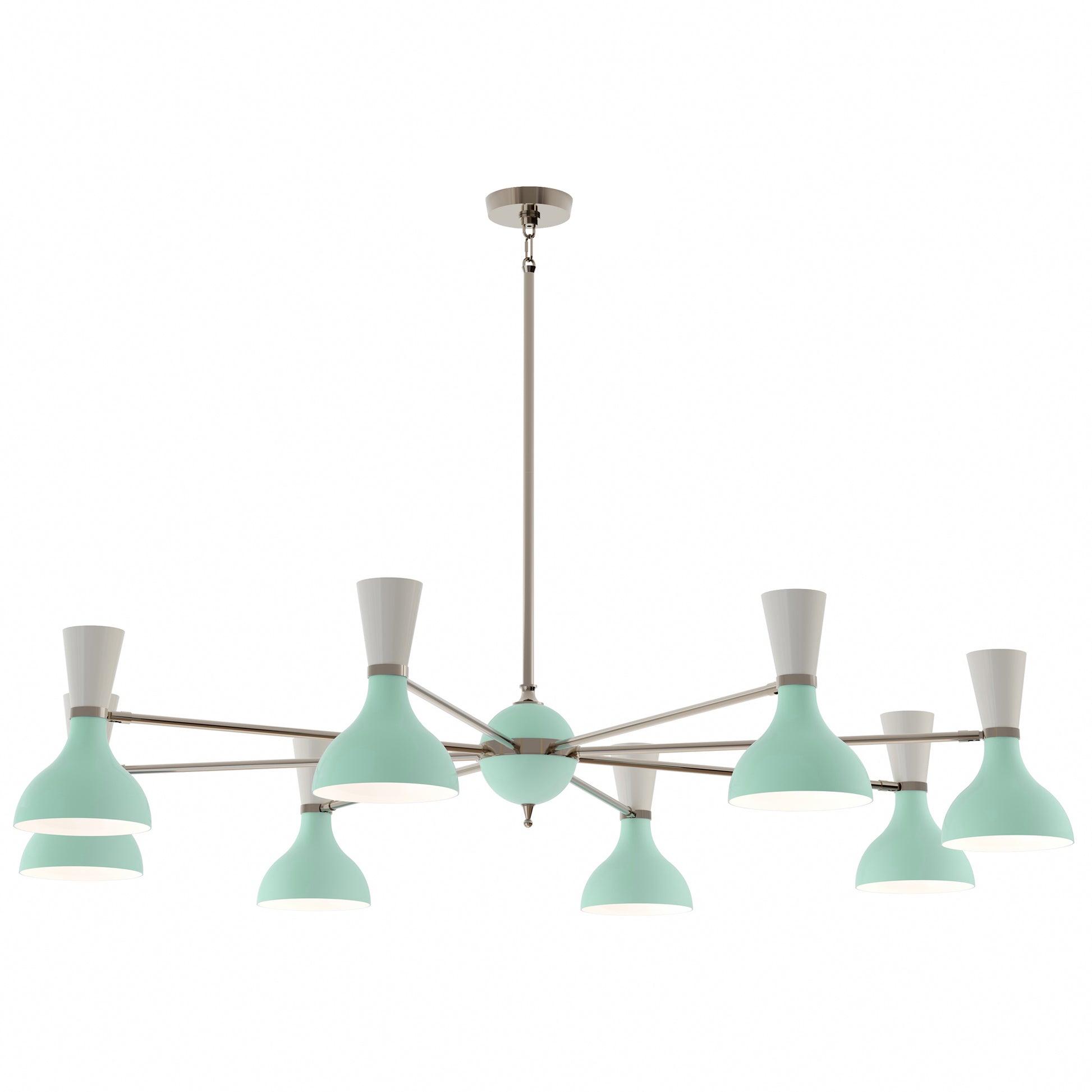 The Clare Chandelier by Robert Abbey is a bold yet refined statement piece, designed to elevate modern and transitional interiors. Featuring a wide, sculptural silhouette and eight hand-painted metal shades, this oversized chandelier delivers both visual drama and functional illumination. Available in Modern Brass or Polished Nickel finishes and an array of richly colored shades, the Clare Chandelier brings a curated, designer-forward aesthetic to dining rooms, living spaces, and statement interiors. Thoughtfully engineered with an adjustable drop and damp-location rating, it balances style, versatility, and performance.