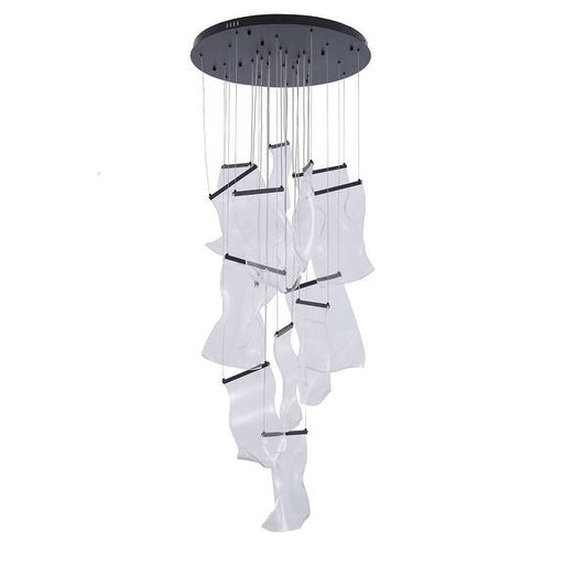 Satin Black 8-Light LED Chandelier with Acrylic Crumbled Sheet Pendants