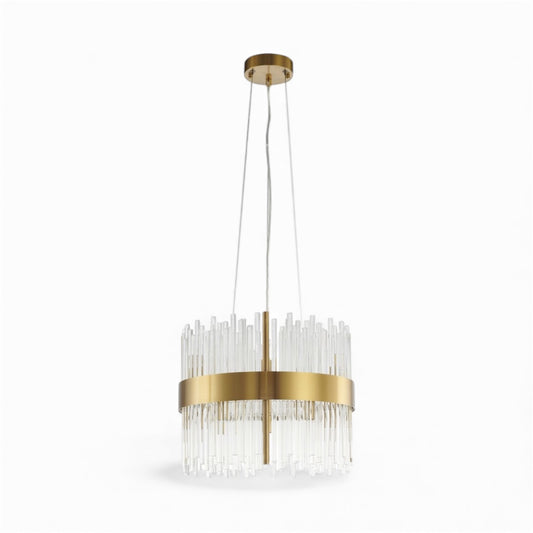 Gold Halo Frame Chandelier with Clear Glass Rods