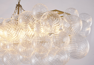 Brass Frame Chandelier featuring Clear Swirl Glass Shades