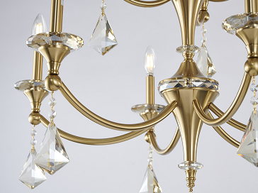 Two-Tier Satin Brass Frame with Champagne Hanging Crystals Accents