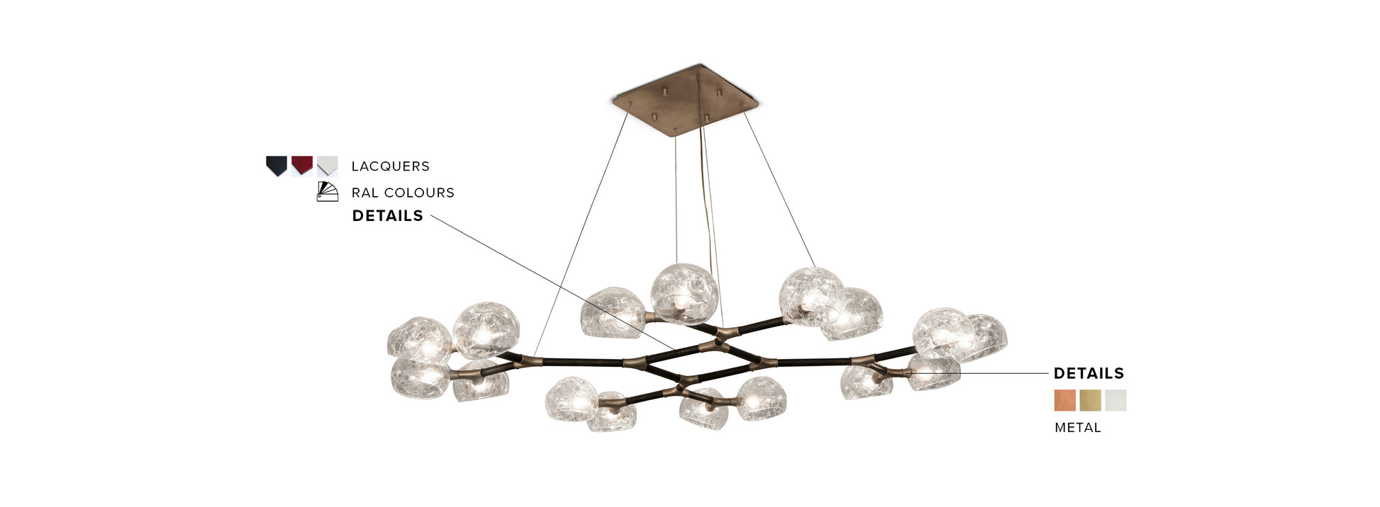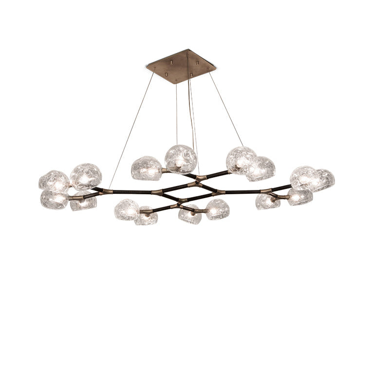 Just like the ancient Egyptian God of the Sky and the Rising Sun, the HORUS II Suspension Lamp radiates power and elegance. Crafted with a matte black lacquered brass structure and intricate crackle glass diffusers, this dramatic lighting piece is designed to make a bold statement in modern luxury interiors. Perfectly suited for a grand living room, dining area, or hospitality space, it merges sculptural form with soft illumination for an unforgettable ambiance.