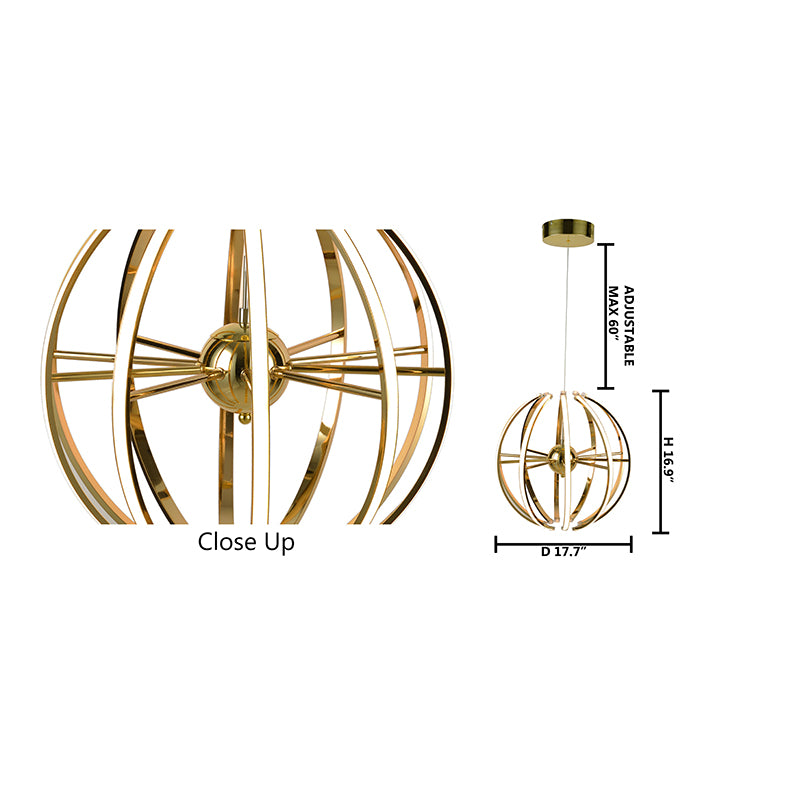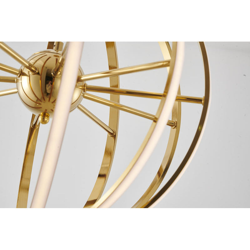 - Contemporary LED chandelier featuring a gold aluminum frame