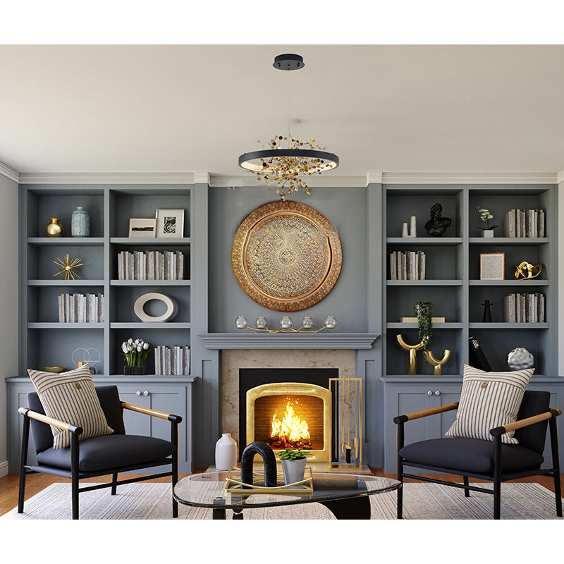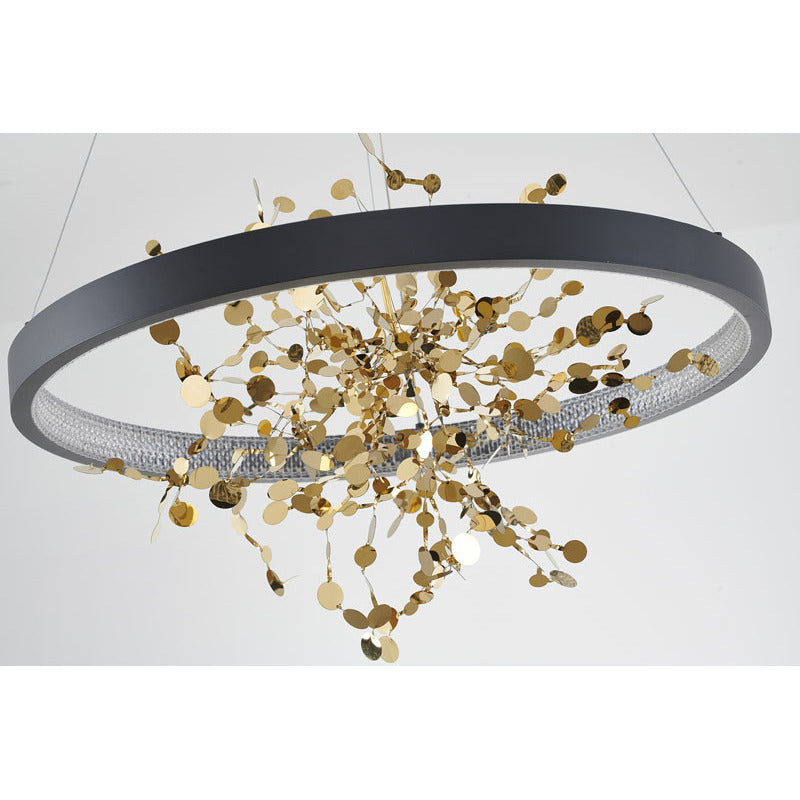 Bethel International Sand Black LED Chandelier with Gold Confetti Interior – 24" Contemporary Pendant Light