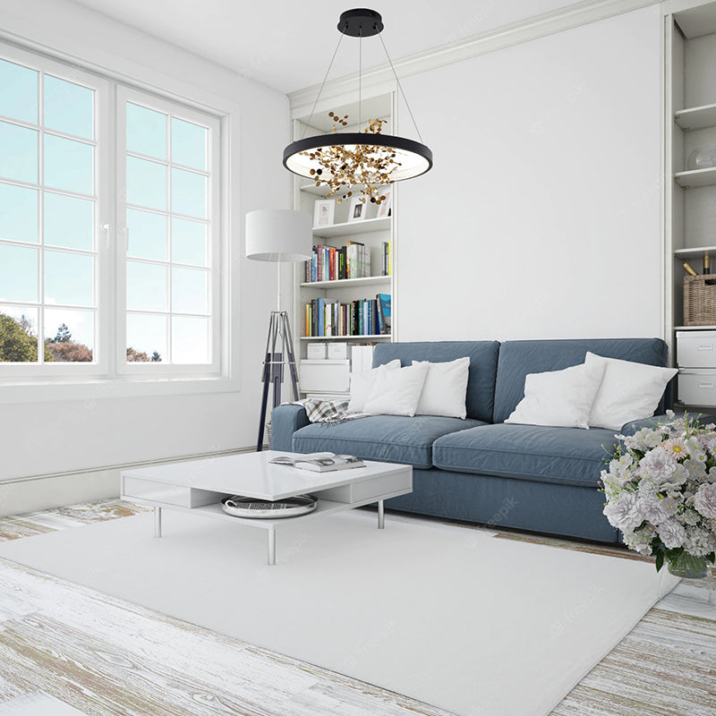The GL351C24B-2 LED Chandelier by Bethel International blends modern minimalism with playful elegance. Featuring a sand black frame and a gold stainless steel confetti interior, this pendant light creates a shimmering effect when illuminated. The transparent acrylic diffuser softens the glow, making it perfect for entryways, dining rooms, or living areas. With adjustable hanging cords and tri-color LED capabilities, this fixture combines style, versatility, and functionality in one contemporary design.