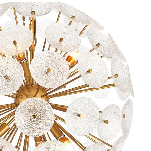 Round Chrome/Brass Frame Chandelier with White Acrylic Leaf Accents