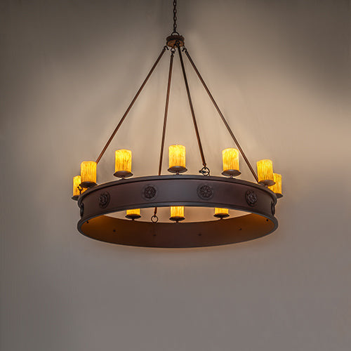 48" Wide Barrel Stave Metallo 10 Light Chandelier