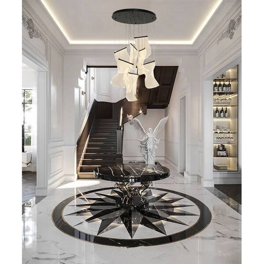 Satin Black LED Chandelier with Acrylic Crumbled Sheet Pendants