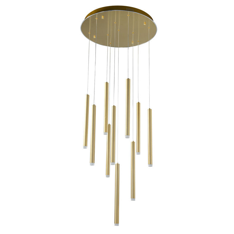 Gold LED Chandelier – Modern Hanging Rod Light with Frosted Diffusers