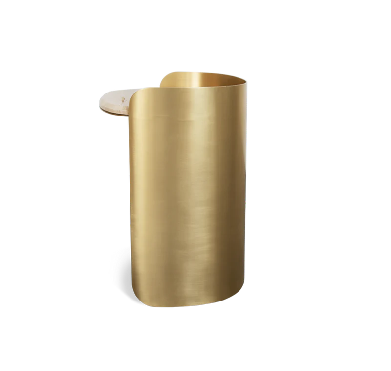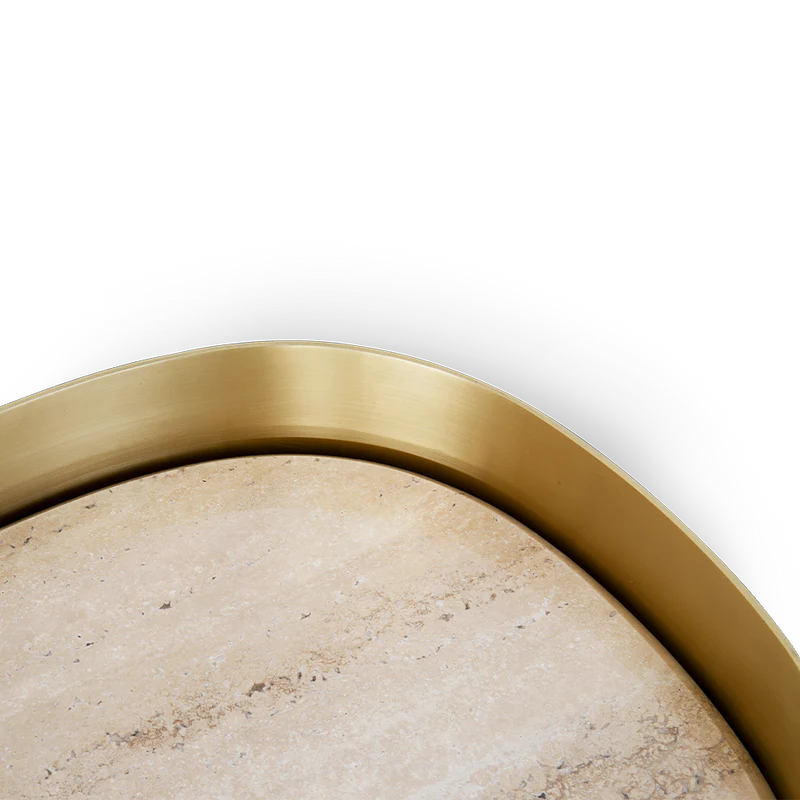 Finshes structure: Aged brass and travertine stone on the top