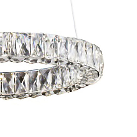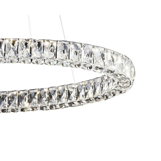 Chrome LED Chandelier – Triple-Sided Clear Crystal Ring Pendant Light