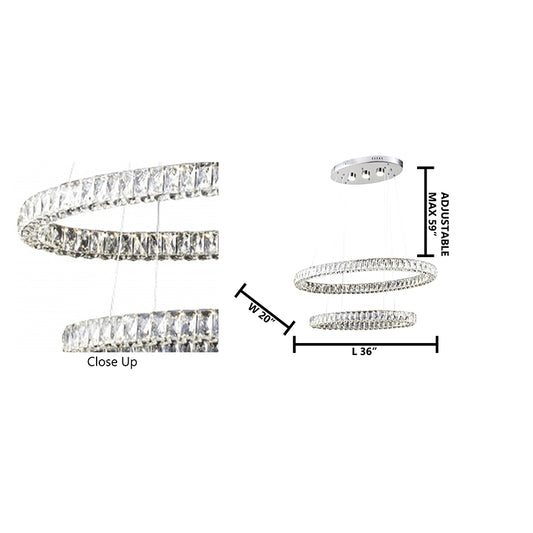 Chrome LED Chandelier – Triple-Sided Clear Crystal Double Ring Pendant Light
