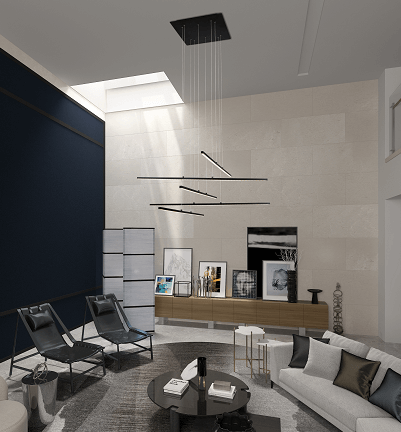 Matte White Frame LED Chandelier with Hanging Stick Pendants