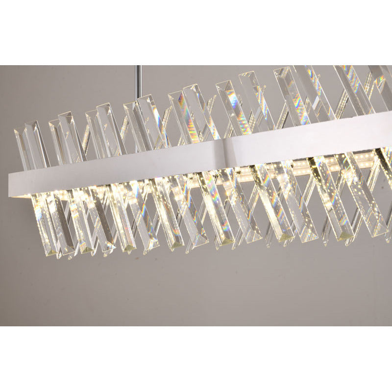 Signature Look: The design showcases a stunning RECTANGULAR CHROME CHANDELIER WITH CLEAR CRYSTAL aesthetic, making it a show-stopping focal point.