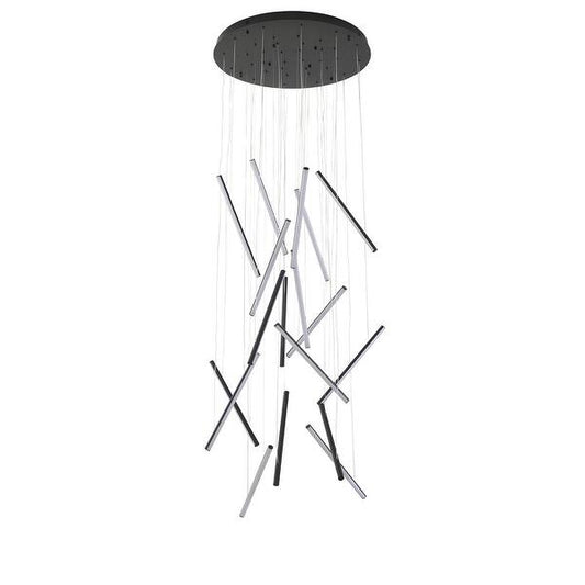 Matte Black Frame LED Ceiling Fixture With Hanging Stick Pendants