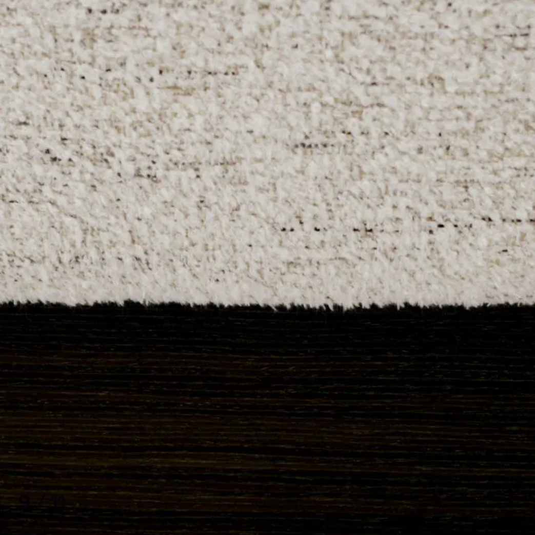 Embodying refined minimalism, the Bastion sofa features a seashell off-white fabric that envelops a sleek, armless silhouette, resting on a charcoal veneer base.