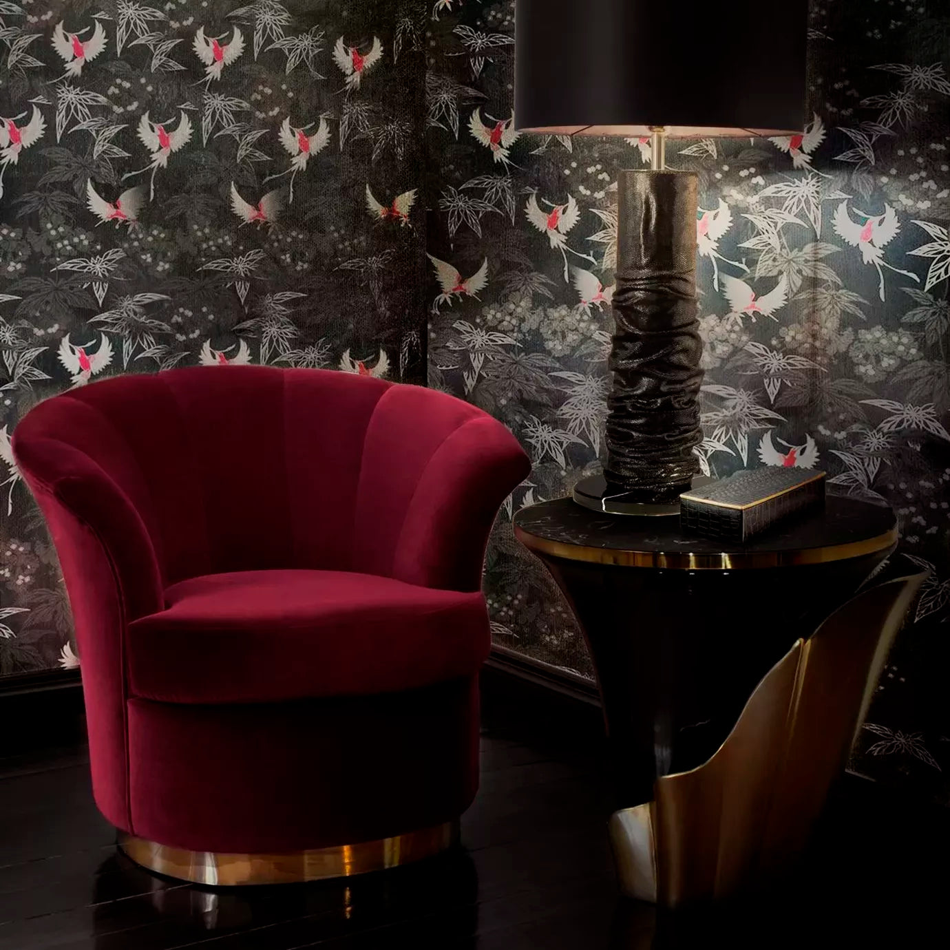 The Yasmine Side Table is a focal point in any room and will make heads turn with its sleek modern design. The sensual outline is crafted from precisely cut marble and set atop a sturdy oak foundation. Traditional lacquer and opulent plated metal intertwine, revealing the relative prominence of each color in the composition.