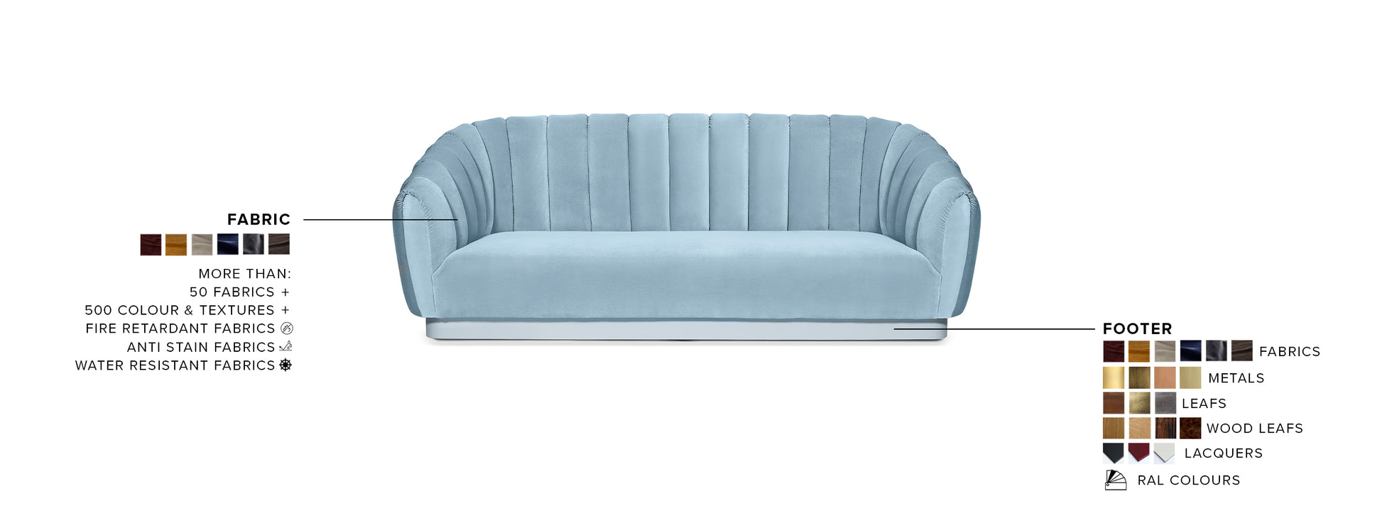 The OREAS Sofa by BRABBU is a luxurious and sophisticated channel-tufted sofa inspired by the Greek god of the mountains. It is made of soft cotton velvet with a hand-finished channel tufting, which gives it a unique and eye-catching look. The sofa is available in a variety of colors and materials, so you can choose the one that best matches your décor.