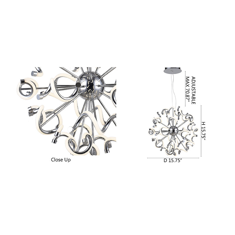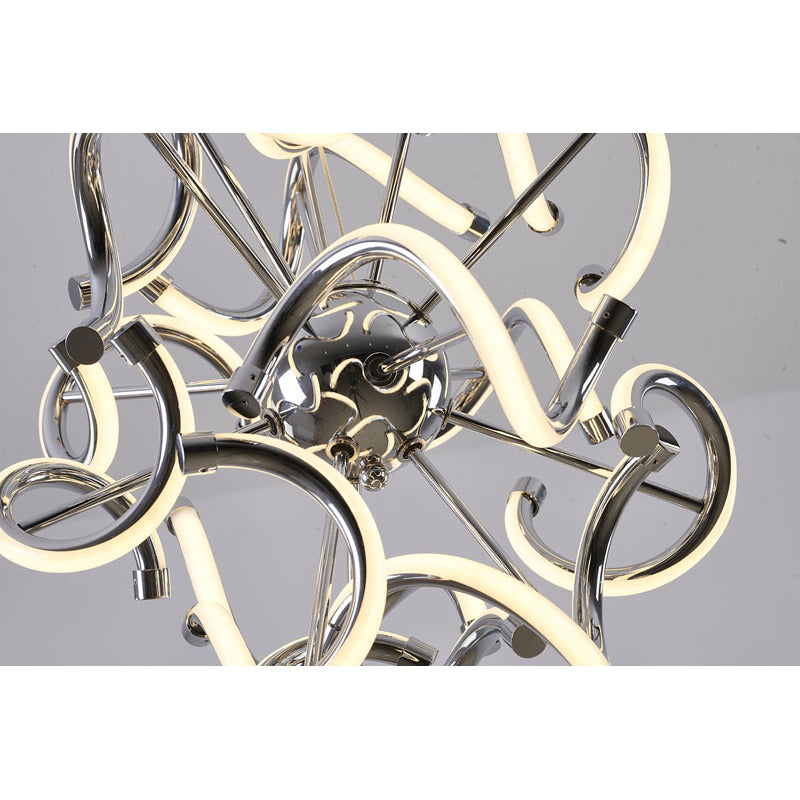 The TR25 Spiral LED Chandelier brings dynamic movement and modern elegance into any space. Designed with a sleek chrome frame and flowing spiral LED light bands, this contemporary fixture delivers a sculptural look while providing soft, even illumination.
